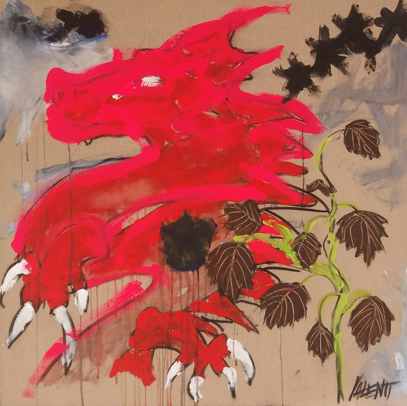 Drago e foglie, 2015, 80x80 cm, acrilico su tela