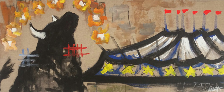 Toro e circo, 2015, 120x50, acrilico su tela