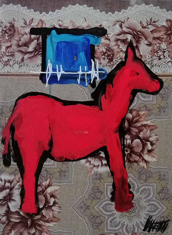 T51, 2018, 60×80 cm, acrilico su tovaglia in pvc