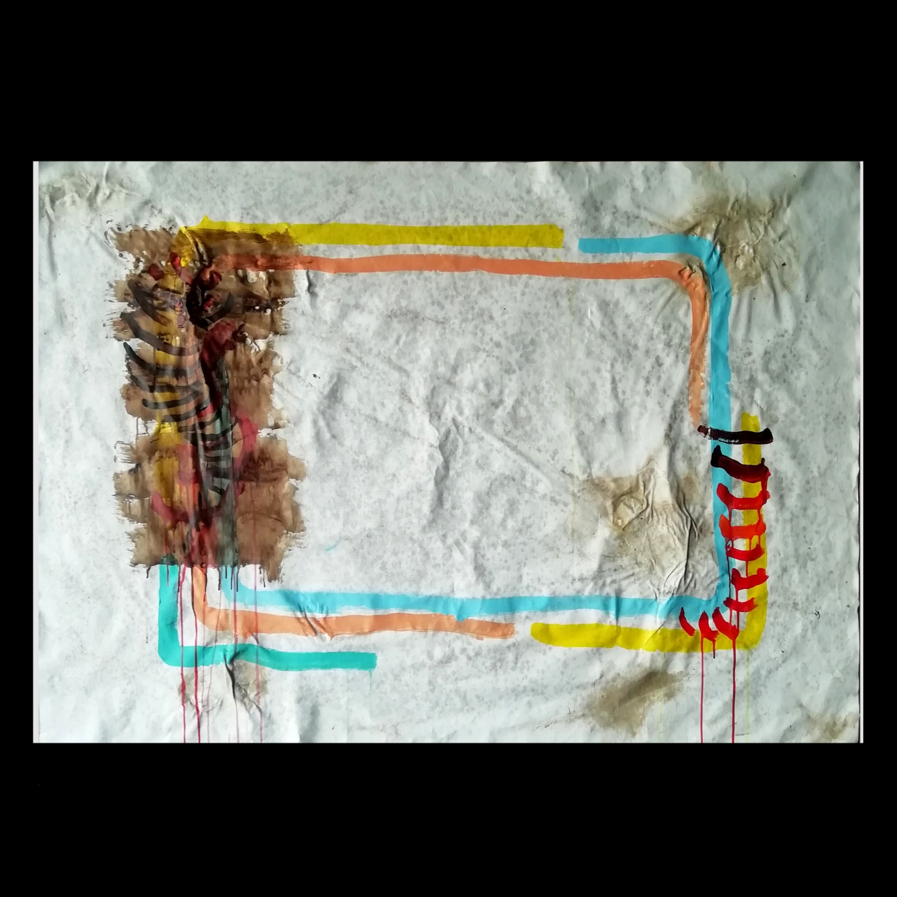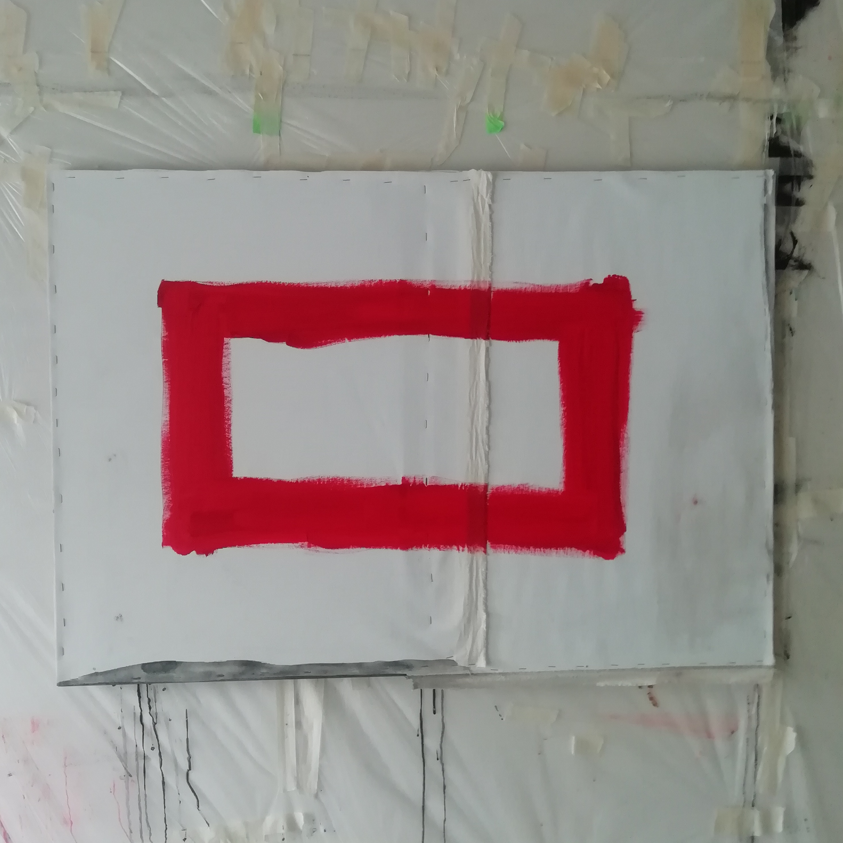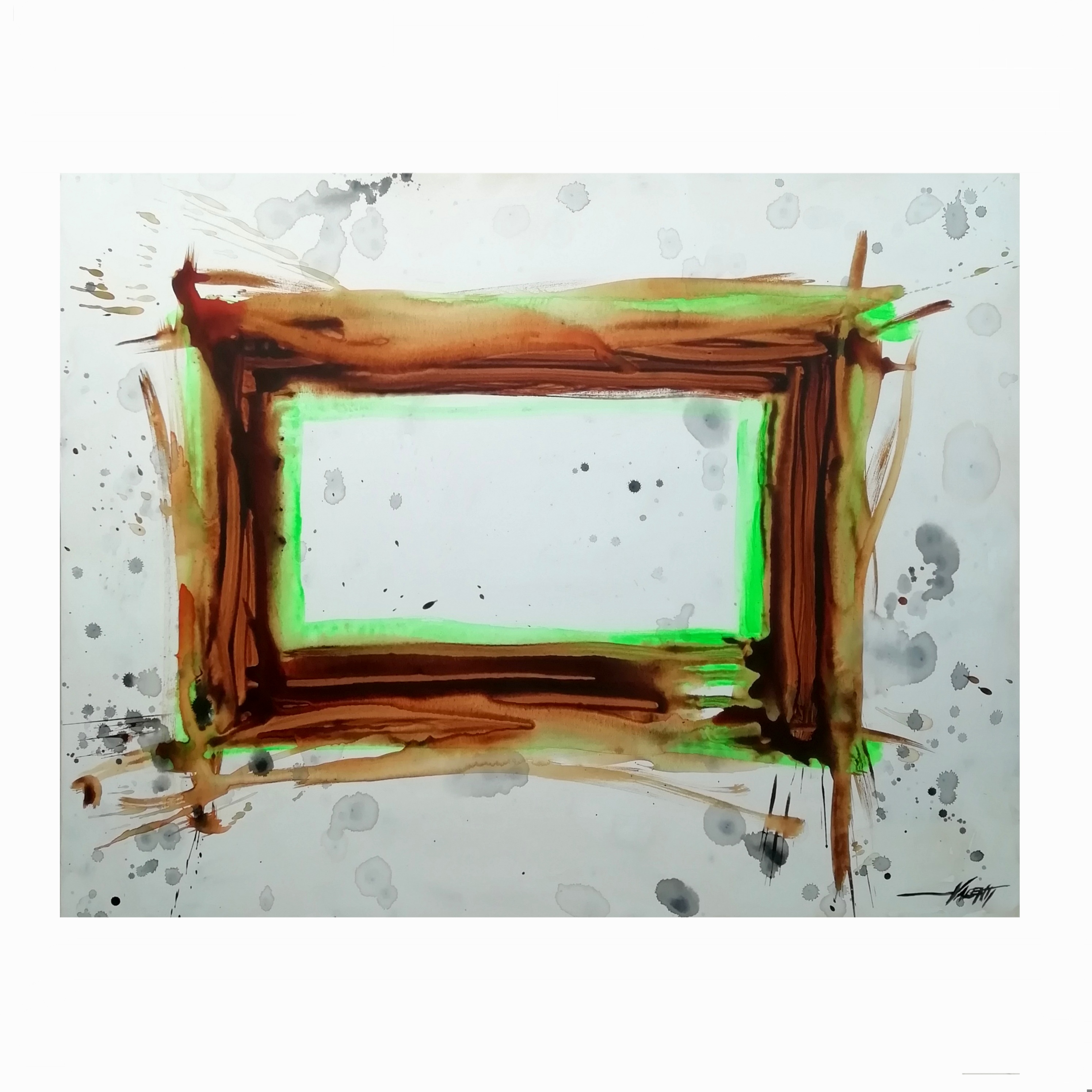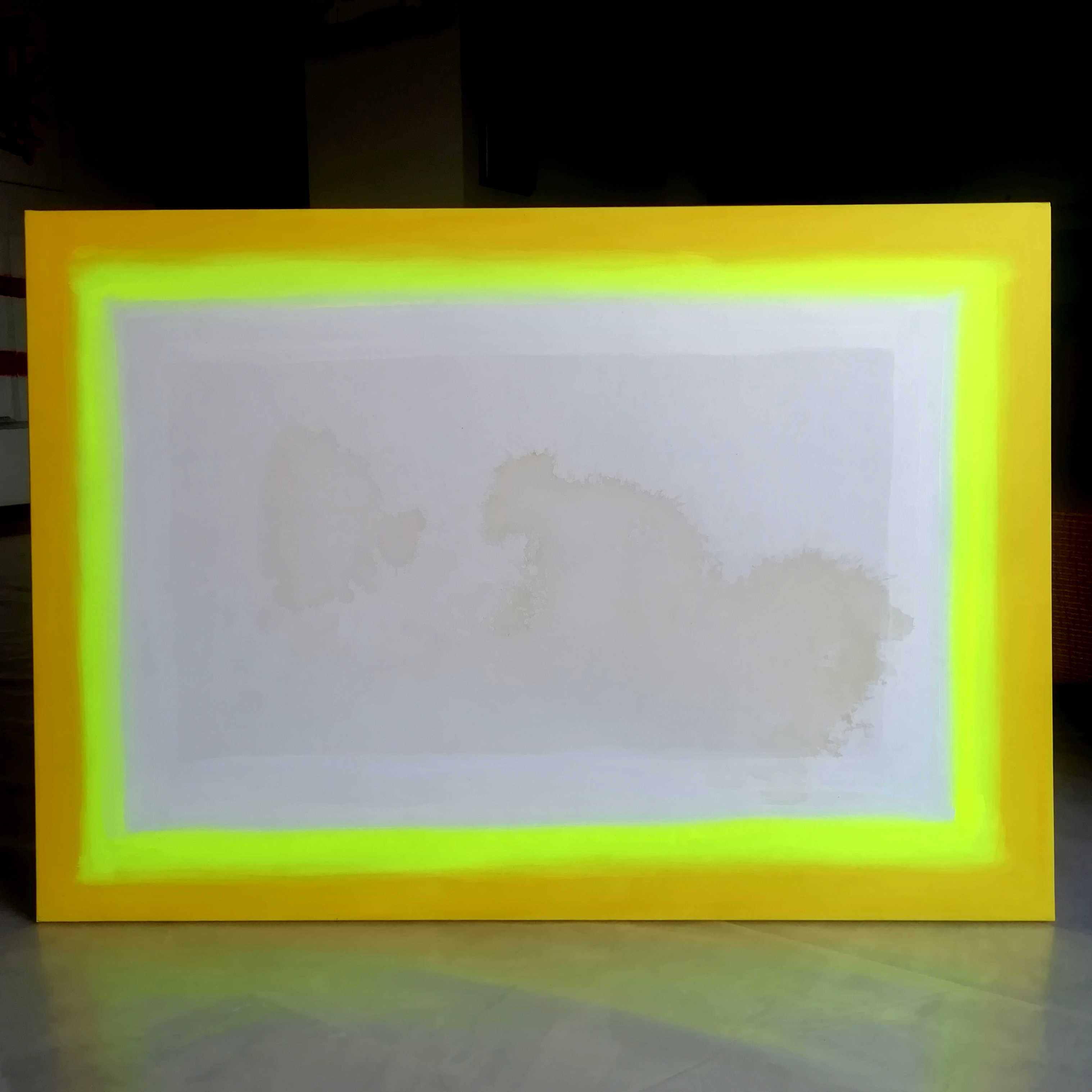 Y34, Inside the rectangle, 2024, 100x70 cm, acrilico e urina su tela