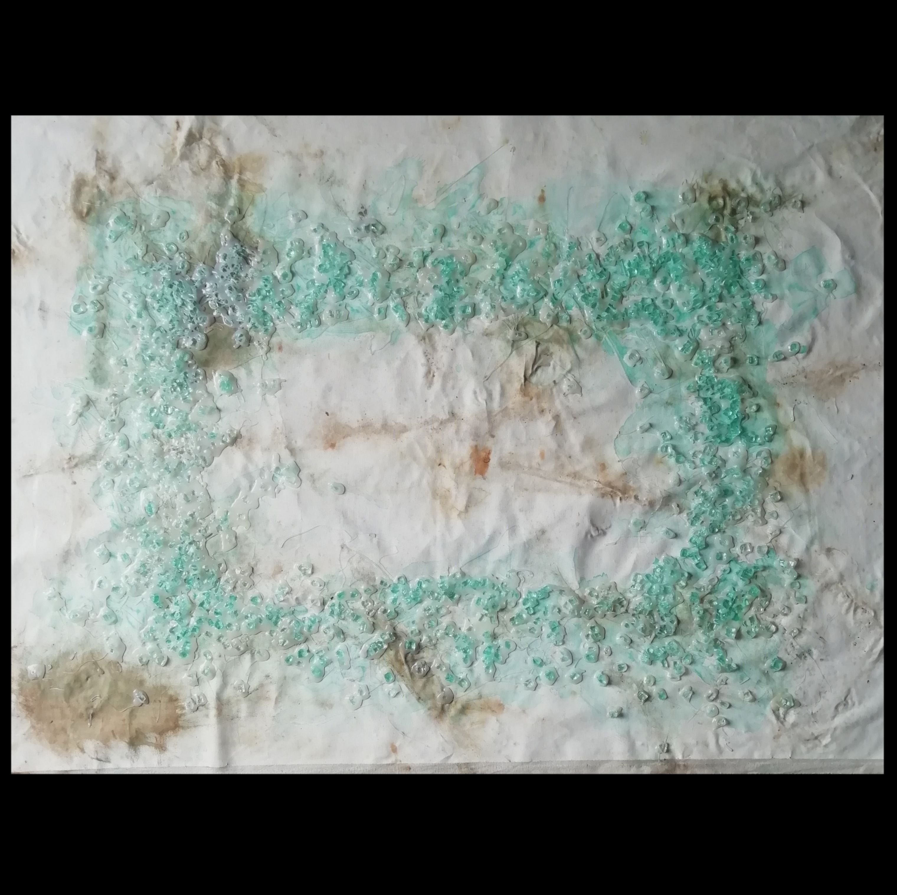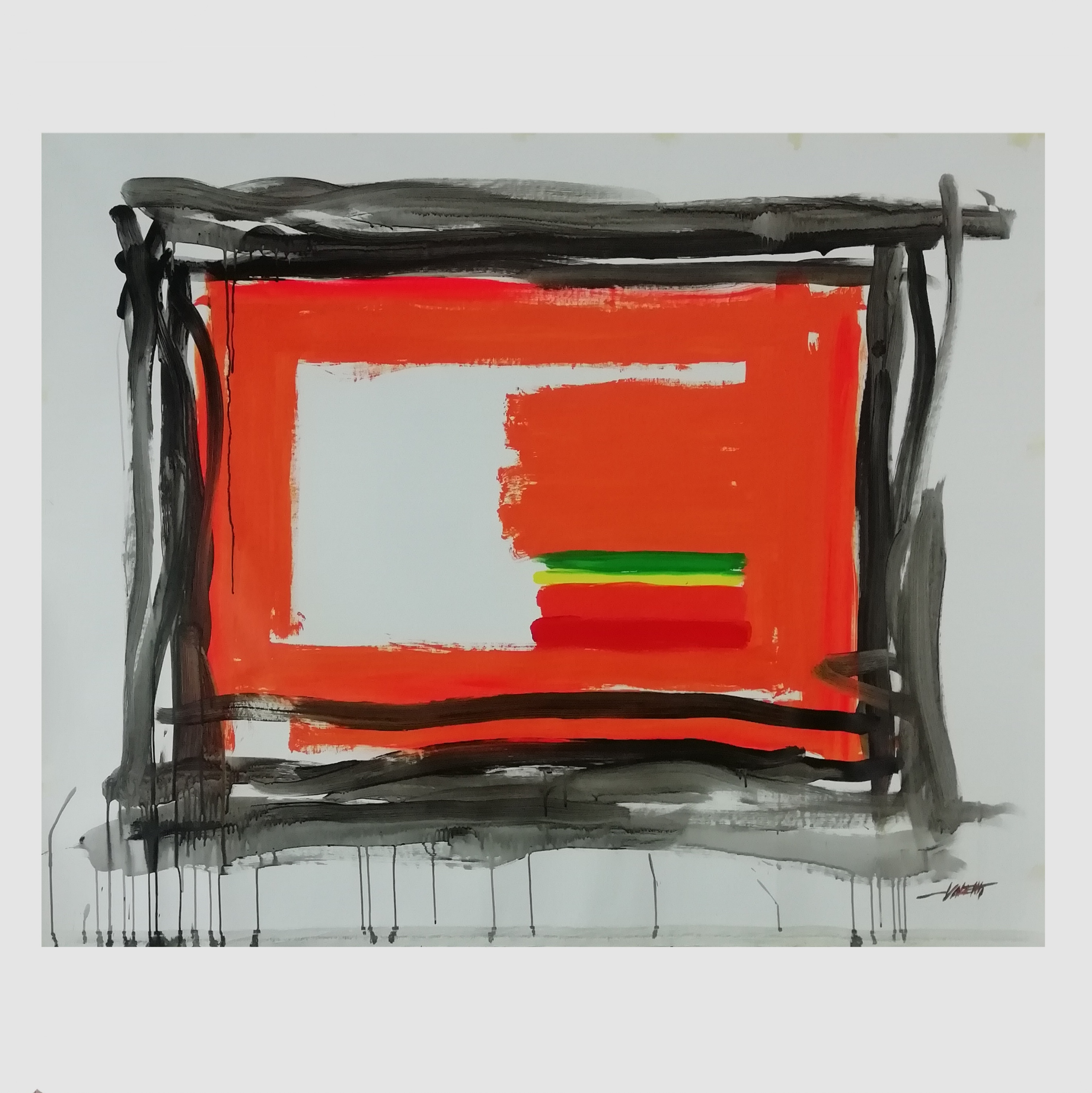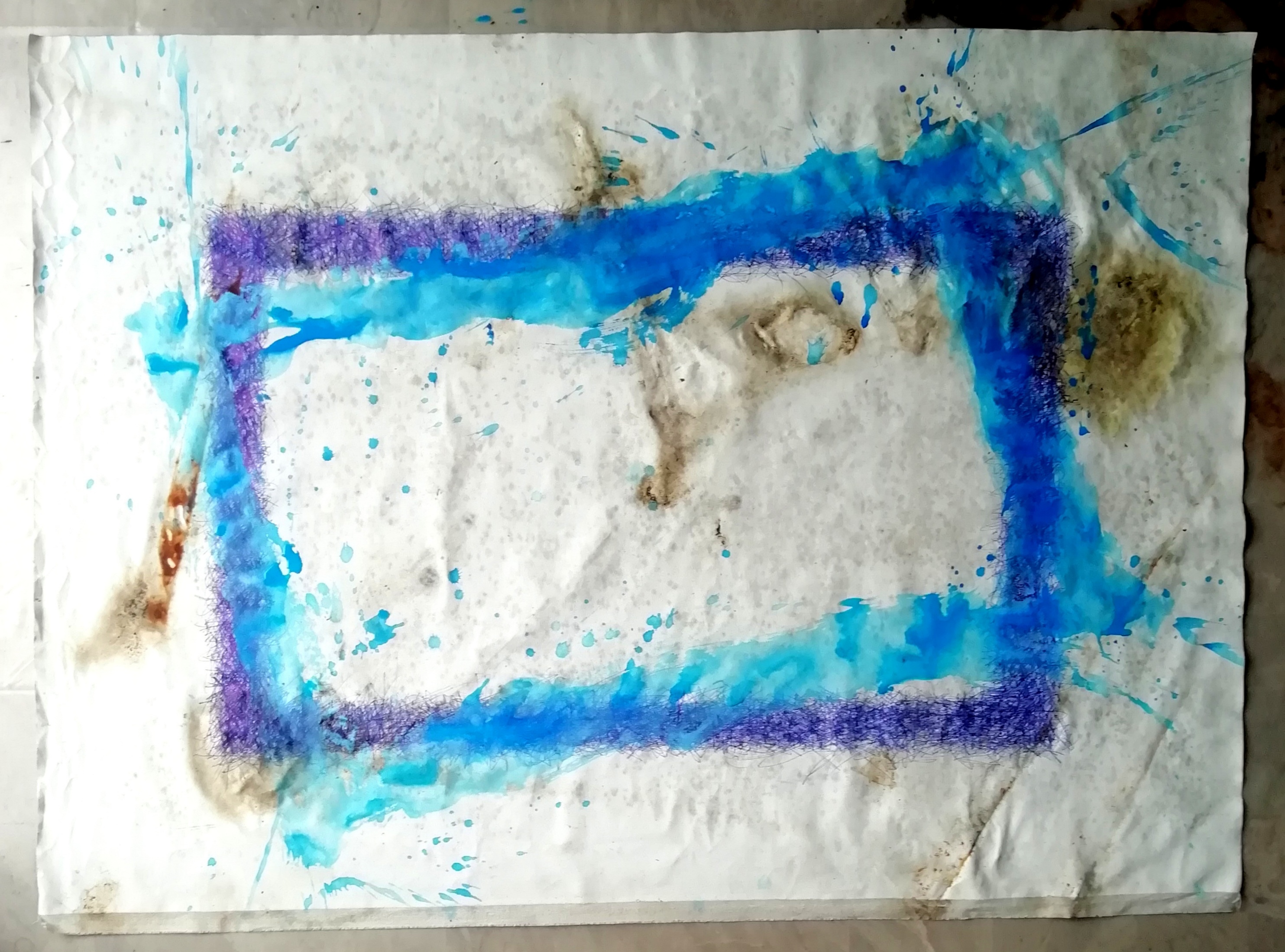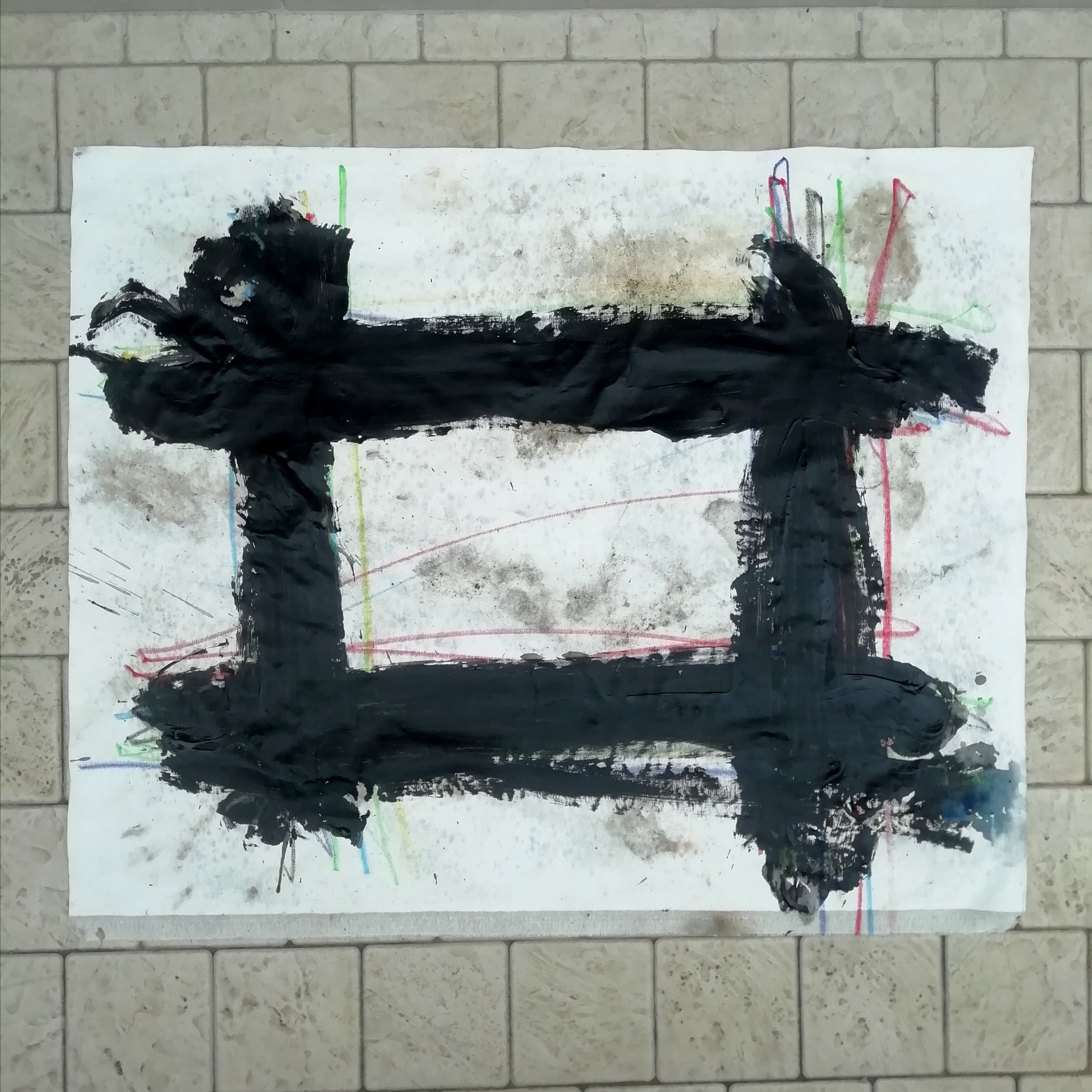 Y34, Inside the rectangle, 2024, 100x70 cm, acrilico e urina su tela