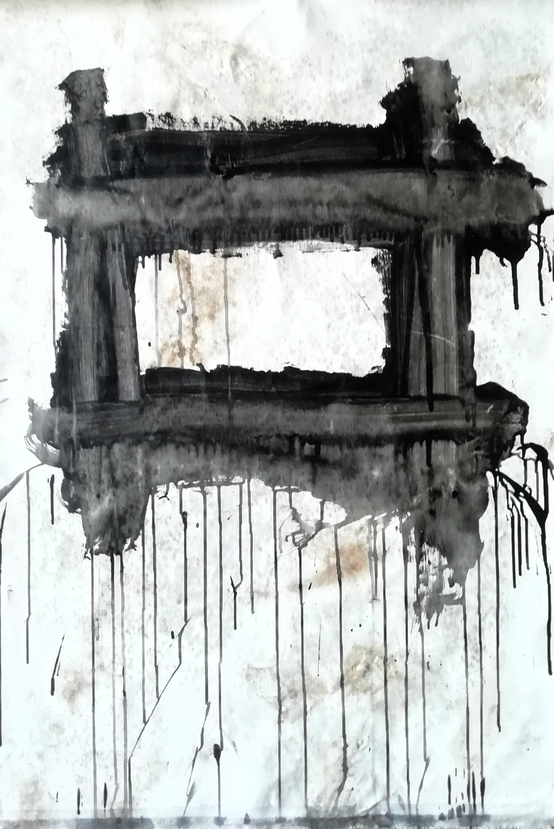 Y39, Inside the rectangle, 2024, 80x60 cm, acrilico e urina su tela